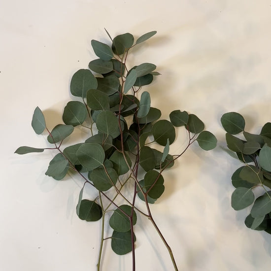 The longer stems often have more offshoots, resulting in a taller and more voluminous bundle. The video demonstrates the taller variety of our Silver Dollar Eucalyptus.